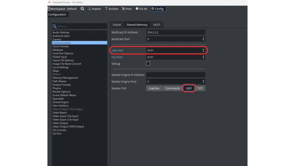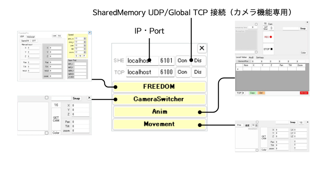 2024年7月7日 / Last updated : 2024年7月8日 Rune Vizrt VIZ_CameraProSwitcherMaster VIZに接続するシステム。それぞれの使用プラグインを出現させる事もできる。 詳しい操作はこちらへSHE 6101(sharedmemoryの設定)TCP 6100(グローバル設定) VIZの設定をし、↓のSAVE後再立ち上げを行う。