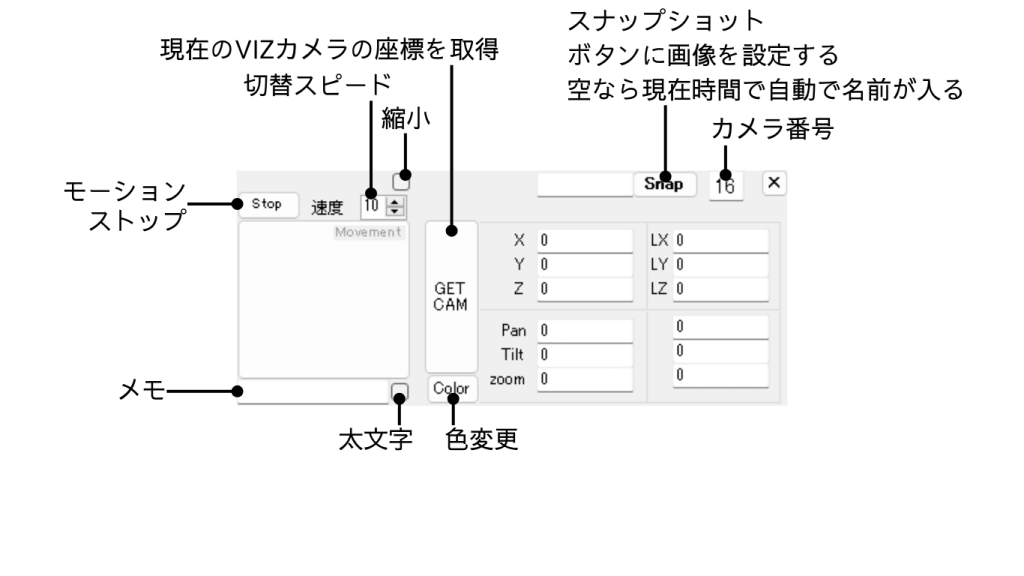 VIZのカメラ位置を記憶し、現在のカメラ位置からそこに向かって移動する